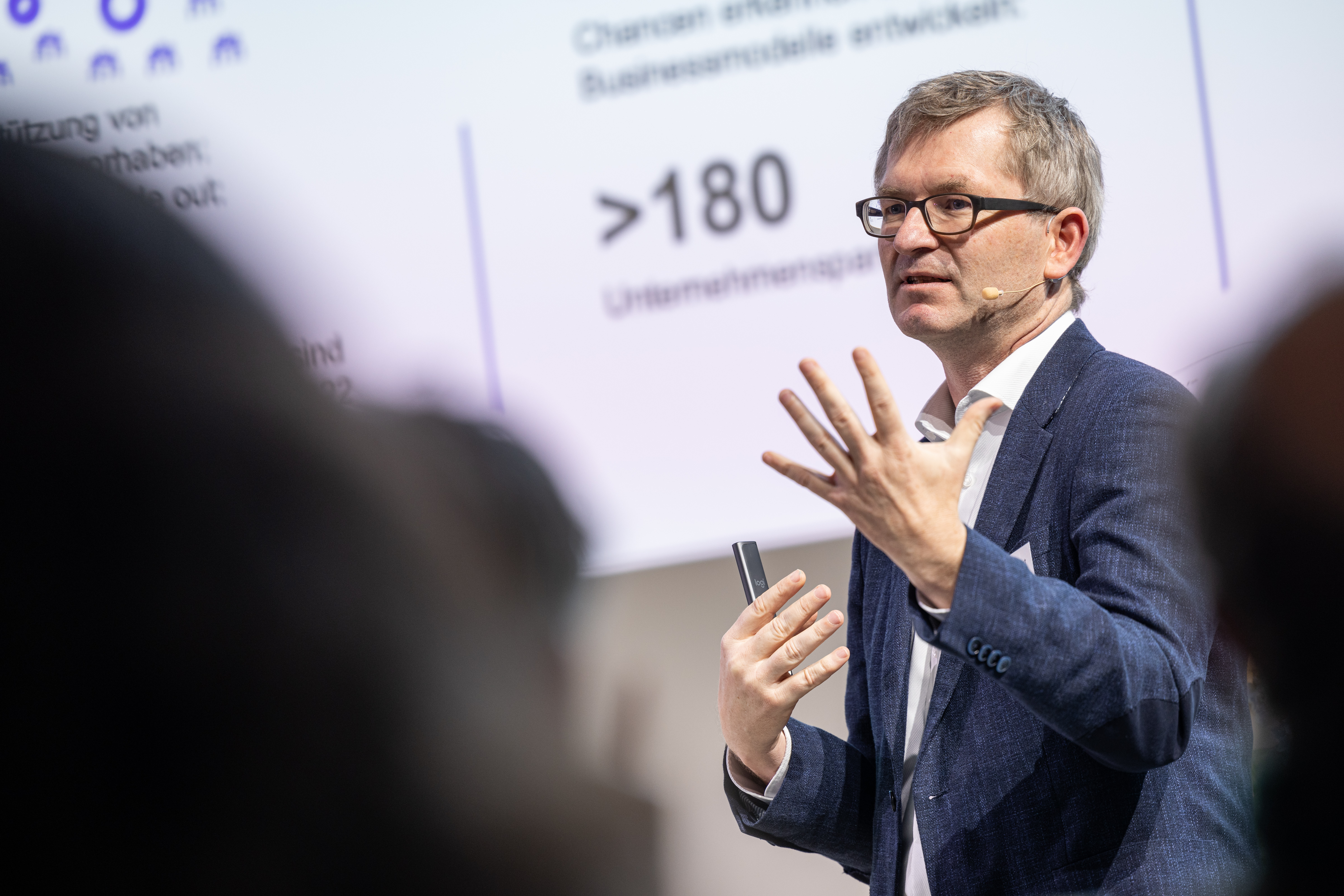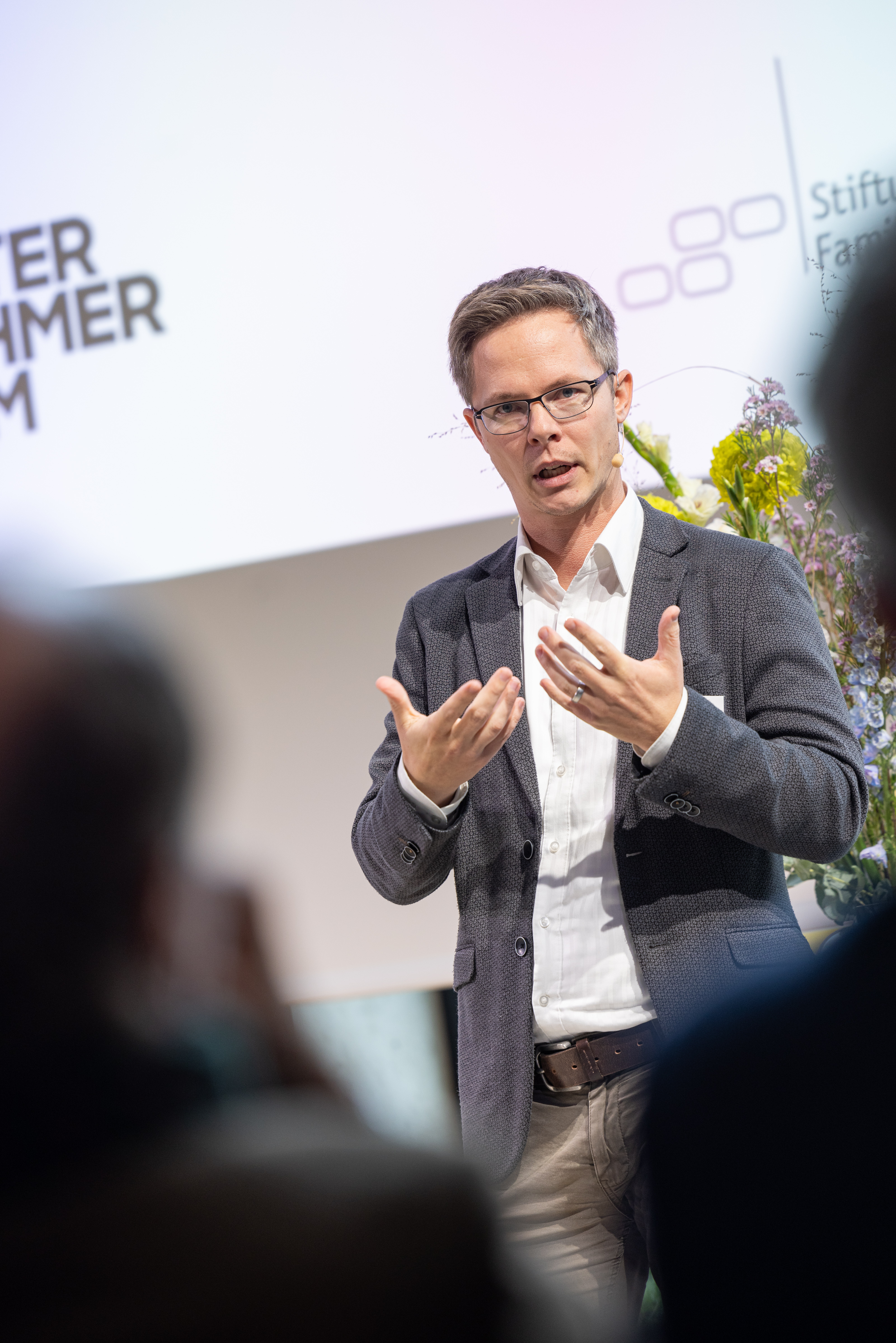 • Zu sehen ist Prof. Dr. Helmut Schönenberger, Geschäftsführer der UnternehmerTUM GmbH und Vizepräsident der TU München auf dem TechForum der Stiftung Familienunternehmen im Jahr 2023.