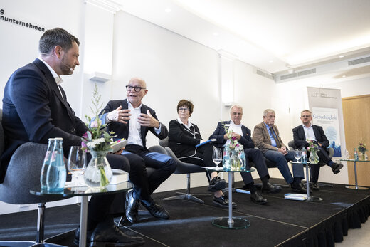 Was ist eine gerechte Gesellschaft – und wer trägt Verantwortung dafür? Diese Grundsatzfrage diskutierten hochkarätige Gäste wie Nils Goldschmidt, Udo Di Fabio, Werner Plumpe und Ursula Weidenfeld im Haus des Familienunternehmens in Berlin. Anlass war die Vorstellung des neuen Interview-Bands „Gerechtigkeit: Wie wir unsere Gesellschaft zusammenhalten“ der Stiftung Familienunternehmen.